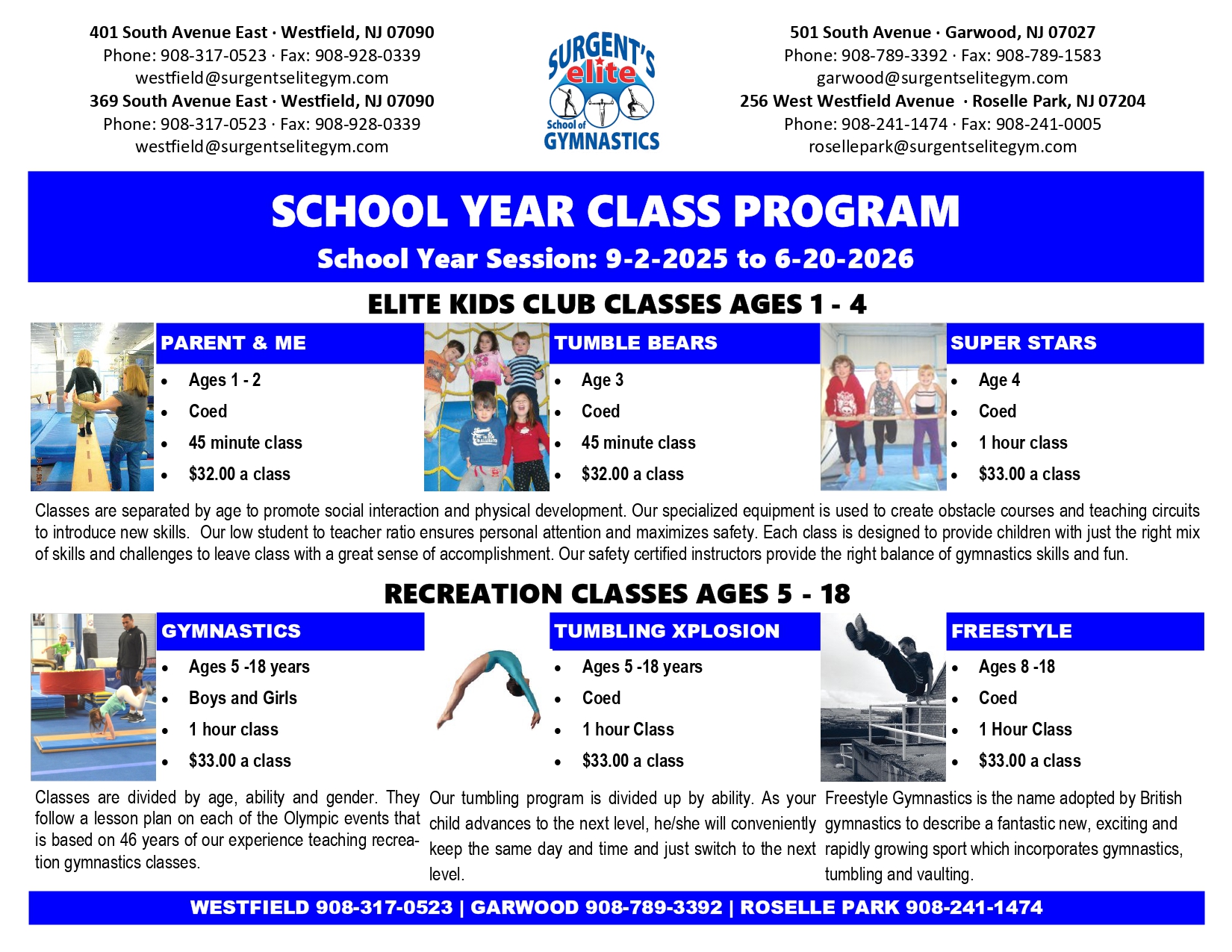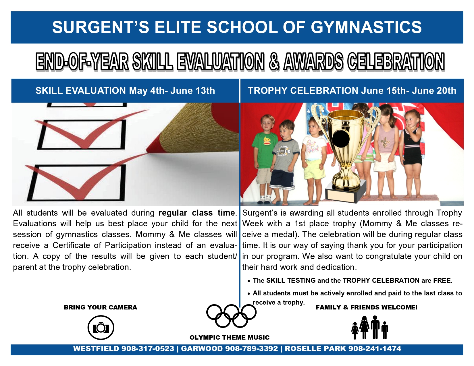 Learn more about our Gymnastics Class Program, Make up Classes, Skill Level Evaluations and Trophy Day Celebration!